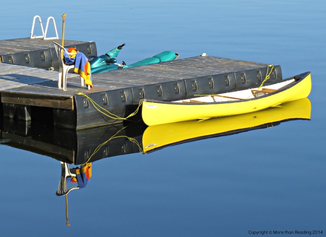 A sunny canoe waits patiently at the dock and