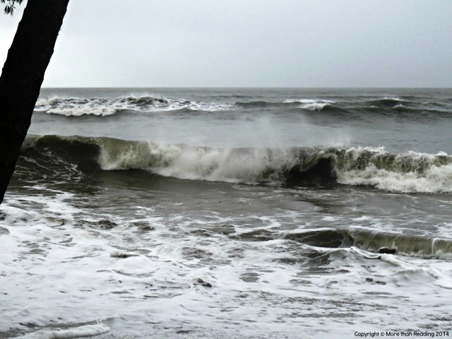 High tides and crashing waves at seven this morning.