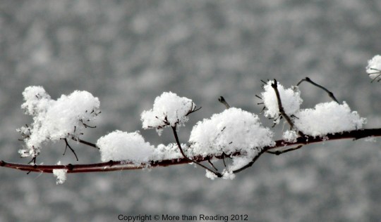 Awake to three inches of fresh snow. First this winter. Cold, soft, silent snow. Delicate, light, fluffy snow. Hovering on twigs and branches.