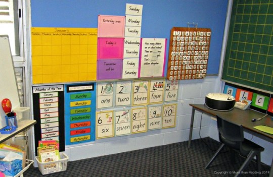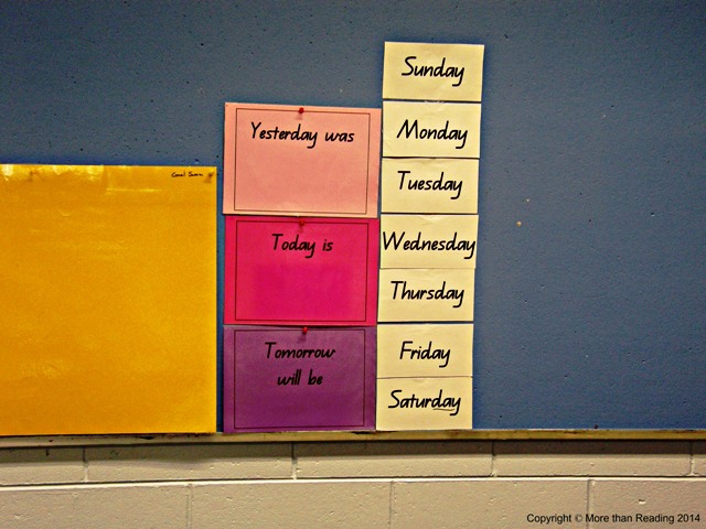 (Note: few charts and cards are displayed on the first day because most literacy displays are built with the children from day one).