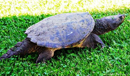 a snapping turtle trundling across our lawn one sunny Saturday afternoon